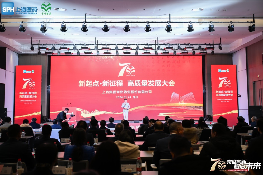 1月24日上午,上藥常藥在新落成的商務(wù)中心舉行新起點(diǎn)·新征程 高質(zhì)量發(fā)展大會(huì)。常州市副市長(zhǎng)徐軍,上海醫(yī)藥執(zhí)行董事、總裁,上藥常藥董事長(zhǎng)沈波,常州市天寧區(qū)委書記許小波,常州投資集團(tuán)黨委副書記、總裁潘儒,上海醫(yī)藥集團(tuán)黨委副書記、上海醫(yī)藥副總裁趙勇,上海醫(yī)藥集團(tuán)黨委委員、工會(huì)主席佘群,以及常州市、天寧區(qū)和雕莊街道有關(guān)領(lǐng)導(dǎo),上藥常藥退休老領(lǐng)導(dǎo)和全體中層以上干部,共約150人出席大會(huì)。