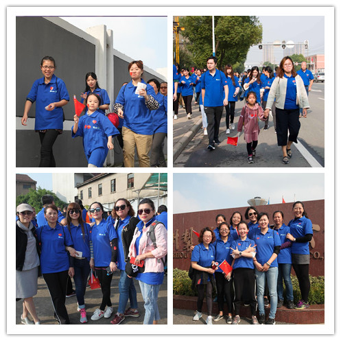 來自上藥常藥母公司、人壽天醫(yī)藥連鎖205名職工,臉上貼著、胸前黏著帶有國旗圖案的貼花、手舞著小國旗,身著統(tǒng)一的上藥藍T恤,背著小背包,向目標站進發(fā)。一路上,大家有說有笑非常開心,也有的職工帶上孩子一起體驗。經(jīng)過一個小時步行,隊伍順利到達目標站。